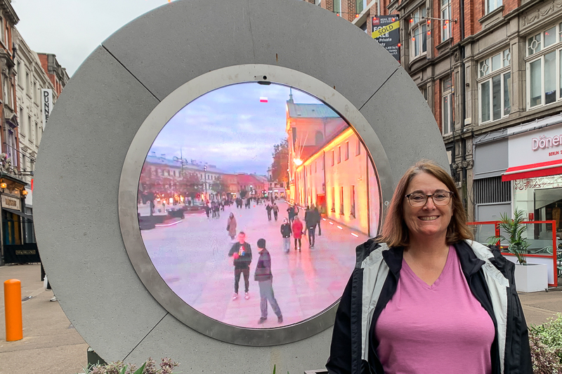 We walked through the Temple Bar district without slowing once, on our way to the Dublin Portal. The Portals are a network of live video cameras (no audio) linking several cities across the world. At the time of our visit the Dublin Portal connected with Lublin, Poland. Basically you can wave to folks looking into the portal in the other city. And take selfies. That’s about it.