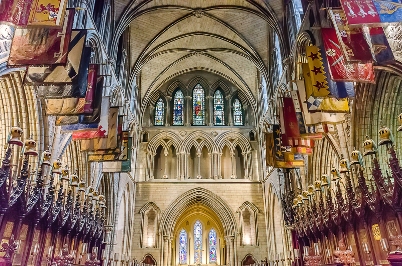 St. Patrick’s Cathedral, the National Cathedral of the Church of Ireland, was our first attraction. After paying €11 each for a ticket, we were ushed inside to the gift shop set up in the rear of the nave. If there is anything positive about buying a ticket and finding a gift shop in a church, it is that we don’t feel bad about acting like (reasonably polite) tourists inside.