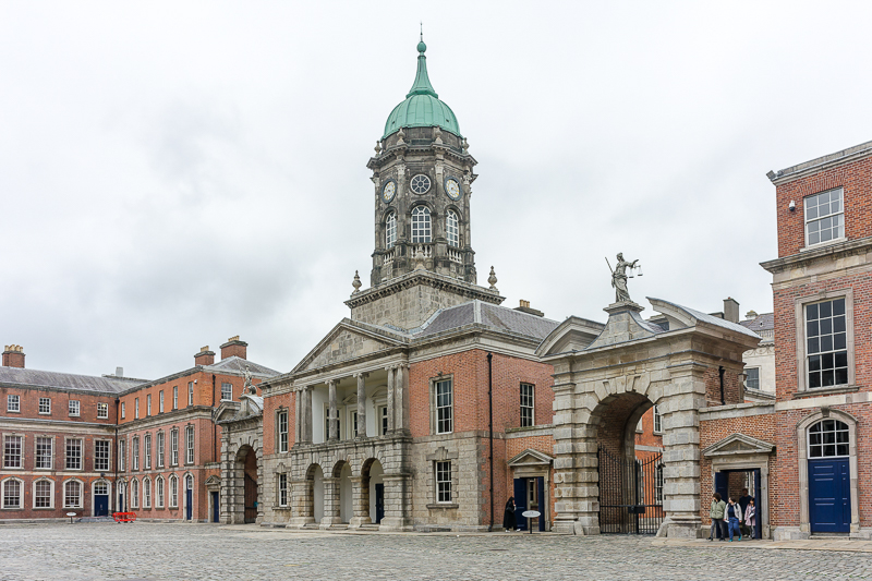 Our second day exploring Dublin began at the Dublin Castle. Okay, it’s more like a small palace than a castle. We overheard a tour guide comment that calling it a castle is a bit of a misnomer. The original structure from the 1200s was a typical castle with four towers and walls, but it suffered major fire damage in the late 1600s when one of the towers, storing ammunition, blew up. It was after this event that a new Georgian Palace was constructed for the residence of the Viceroy, who represented the British monarchy in Ireland until 1922.