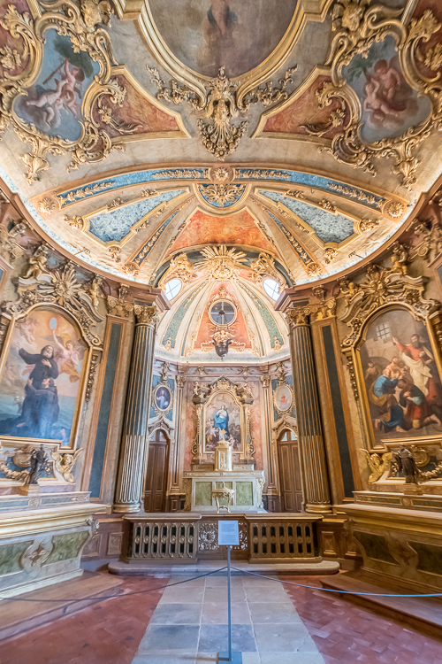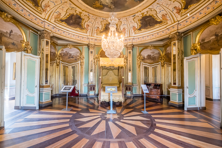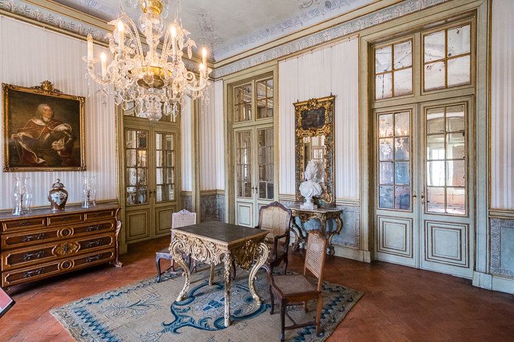 To reach the entrance to the palace we walked past the Museu do Tesouro Real (the Royal Treasury Museum) and through the large courtyard. Palace tickets cost €15 each. The self-guided tour goes through 40 rooms and took us about an hour. Signs are in Portuguese, French, and English. We saw a couple of employees and maybe five other visitors during our tour. It was great.