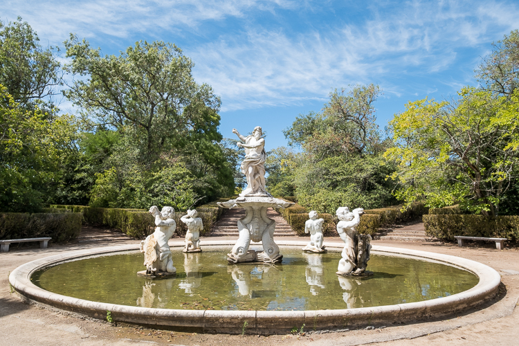We no longer have the urge to try to beat tour groups to most places, instead preferring to go mid to late afternoon, after most tour groups have gone for the day. With that in mind, one afternoon we walked over to the Roma-Areeiro train station and caught a commuter train to Queluz to visit Palácio Nacional e Jardins de Queluz (the Queluz National Palace and Gardens).