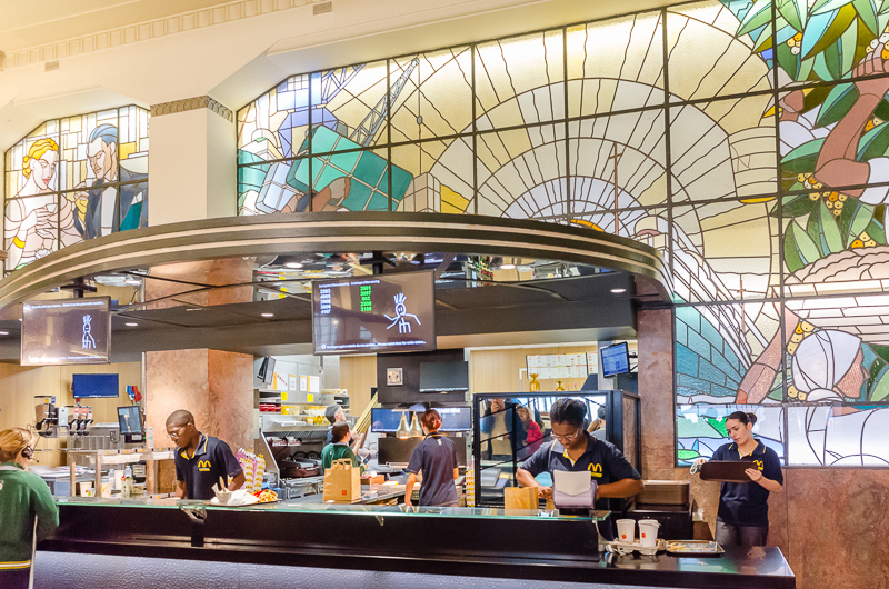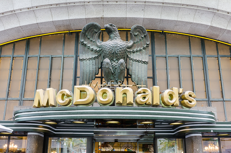 McDonald’s kept the art deco exterior, stained glass panels, and mirrors. Supposedly it has been named one of the most beautiful McDonald’s in the world. I’m not sure about that, but regardless this McDonald’s doubles as a tourist destination. So we felt good about going there for lunch.