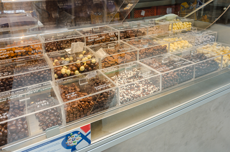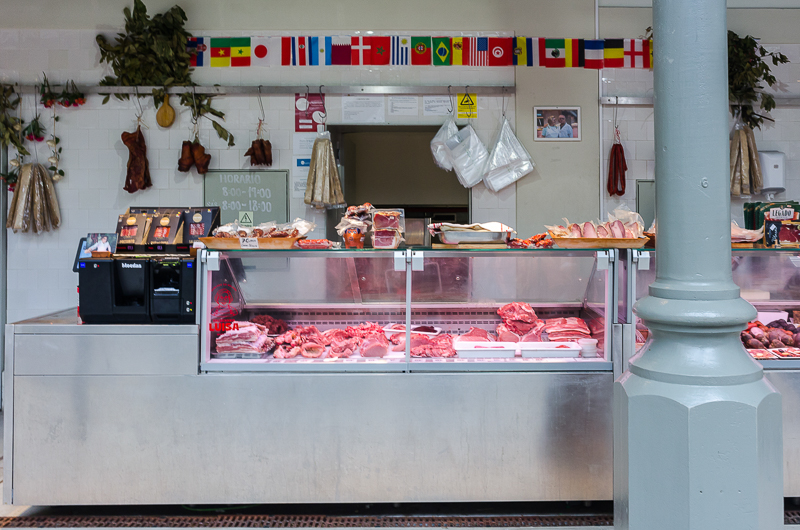 Your purchase options include dried fish, tins of sardines, seafoods, meats, sausages, chickens, wines, cheeses, pastries, fruits, vegetables, flowers, and candies. Pretty much everything. There are even a few very small restaurants if you want a bite to eat.