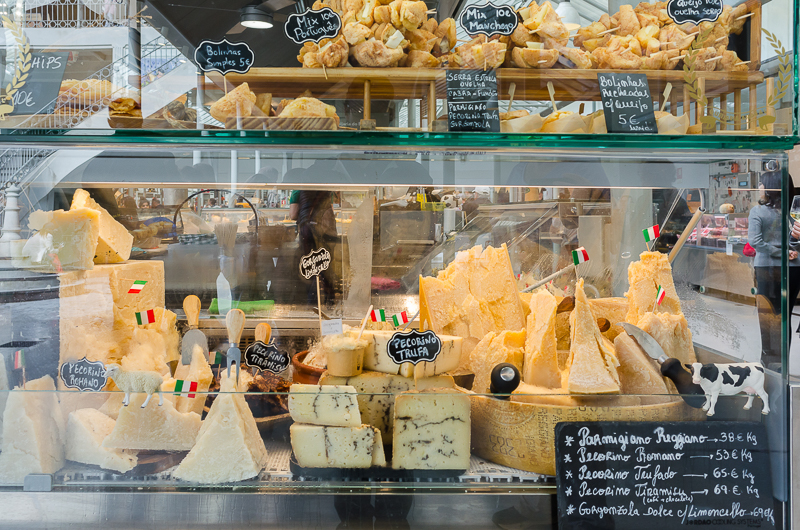 Just by observation, I’d guess that 60% of the folks who walk through the market are just window shopping and taking photographs, 20% are buying a glass a wine first, and then window shopping, 15% are just walking through as a short cut to get to the adjoining metro station, and 5% actually buy something other than a glass of wine.