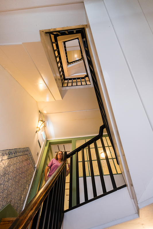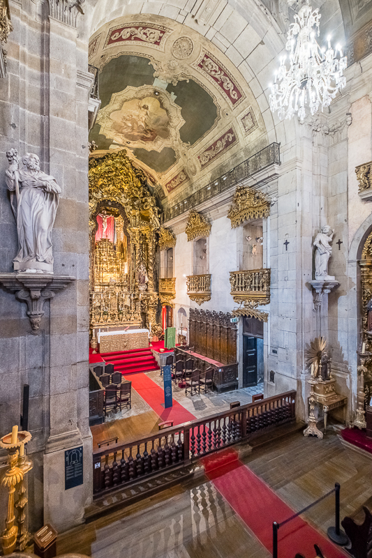 The main attraction is the Church of Carmo. The exterior façade of the east wall is covered in azulejos (the cool looking blue tiles that are so popular in Porto). Inside, the church has a walking route that includes standing in the pulpit, walking across the chancel, and up to a balcony. It might be the most unique walk through of a church that we have ever taken.