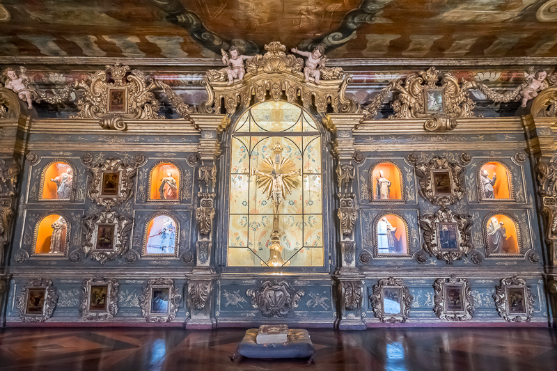 After buying tickets we walked over to the old church, the Church of the Convent of St. Francis. Don’t let the Gothic exterior fool you. Inside it is all Baroque, specifically gilded woodcarvings from the 1600s and 1700s. The church has a no photograph policy, but did not seem to care about folks taking quick snapshots with their phones.